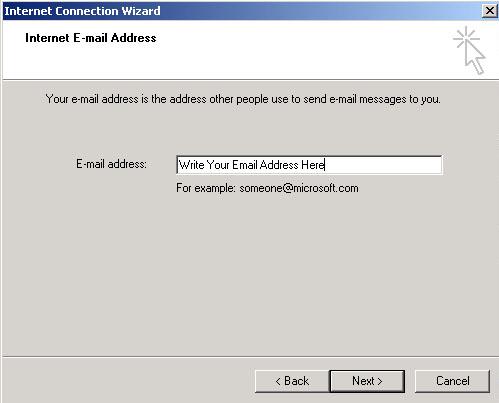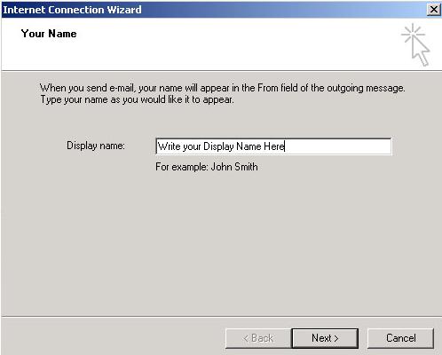 در قسمت Display Name نام مورد نظر خود (نام شما كه در هنگام فرستادن نامه ، همراه نامه ، به عنوان نام فرستنده ارسال مي شود) را وارد نماييد. گزينه Next را انتخاب نماييد.