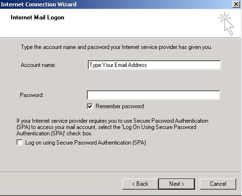 اگر مي خواهيد هر دفعه براي ديدن E-Mail كلمة عبور (PASSWORD) از شما سؤال نشود در قسمت password كلمة عبور خود را تايپ نماييد، چنانچه مايل هستيد هر مرتبه password سؤال شود، قسمتpassword را خالي بگذاريد. گزينة Next را انتخاب نماييد.